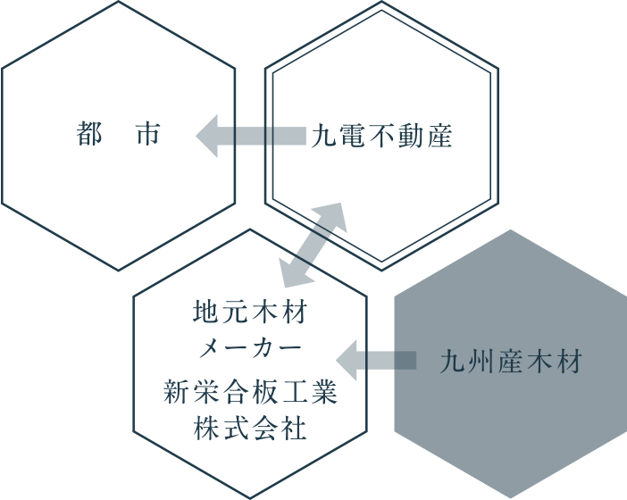 九電不動産は持続可能な循環型社会を目指し、環境保全を推進しています。その一環として九州産木材をマンション建設に積極的に活用していきます。森林環境保全や林業従事者教育への取組みを行っている新栄合板工業株式会社をパートナーとして選定し、森林が抱える課題解決に協力していきます。