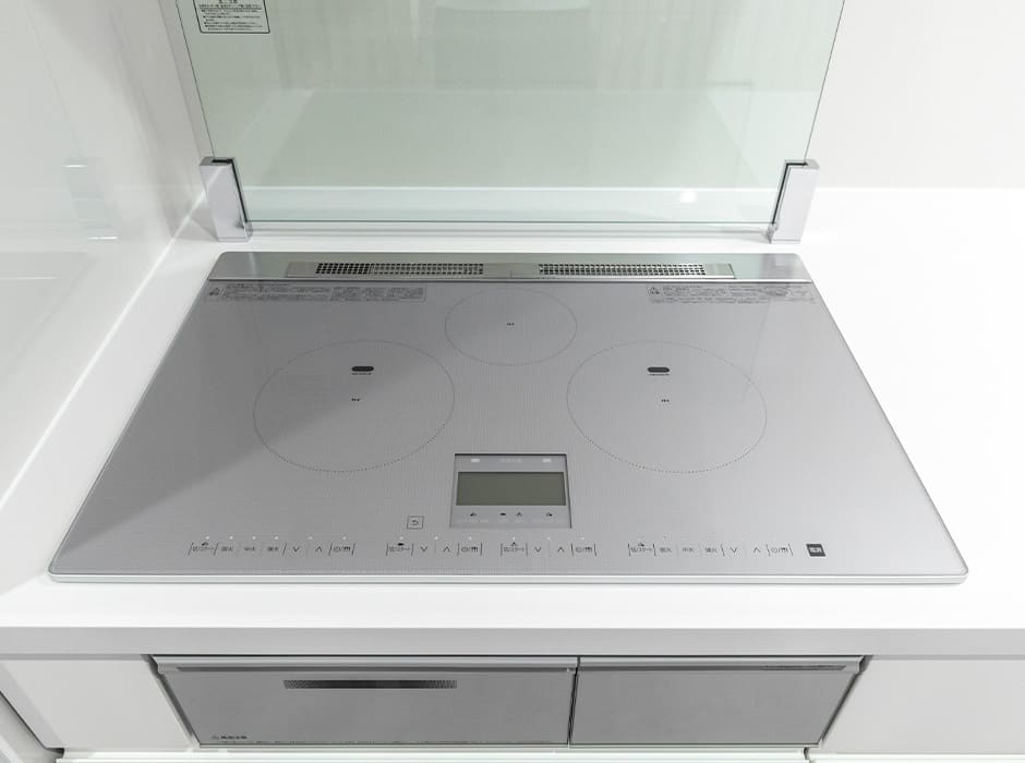 グリル調理が、おいしくできる充実機能の3口IHクッキングヒーター。フラットでサッと拭きやすい「薄型フレーム」採用です。