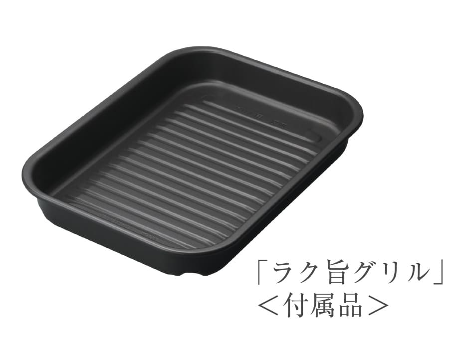 「ラク旨グリル」は、深めの皿で庫内への油跳ねをガードするからおそうじの手間が減らせ、表面はフッ素コートで汚れが落としやすく、グリル庫内を高温にして油汚れを乾燥させる、庫内クリーニングも搭載しています。