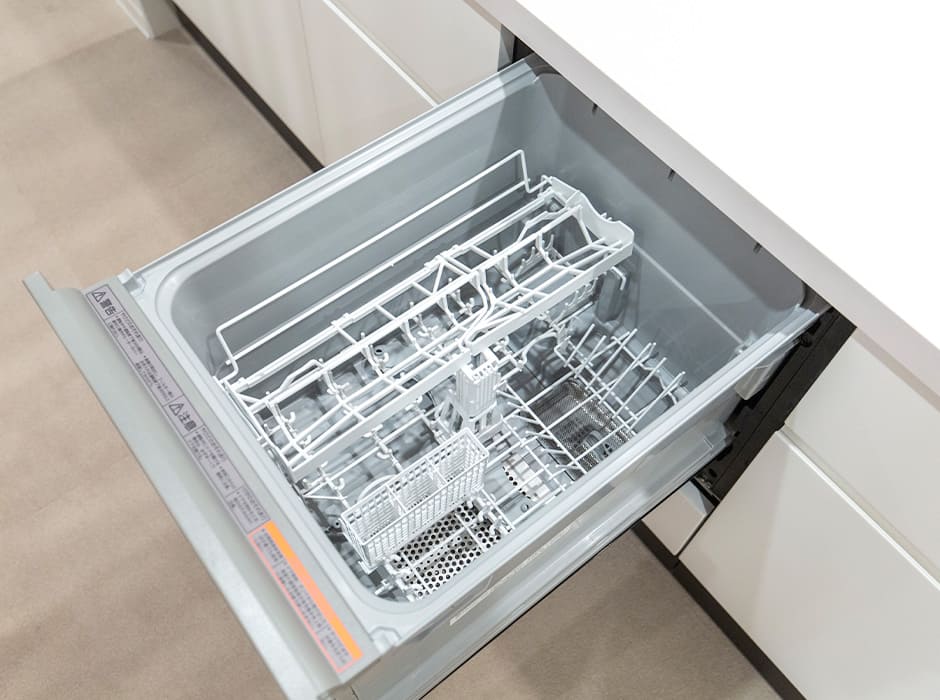 スリムなデザインで大きな食器もたっぷり収容できます。節水や後片付けの時短で、食後の家事をサポートします。