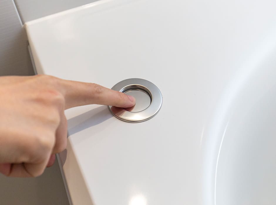 ワンタッチ操作で排水が簡単。チェーンがこすれ汚れる心配がなく、浴槽を美しく保ちます。