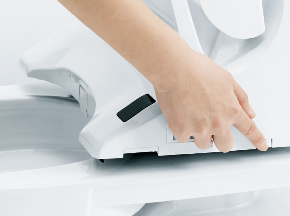 ワンプッシュでウォシュレット前方が持ち上がるので、便器との間をラクにお掃除できます。