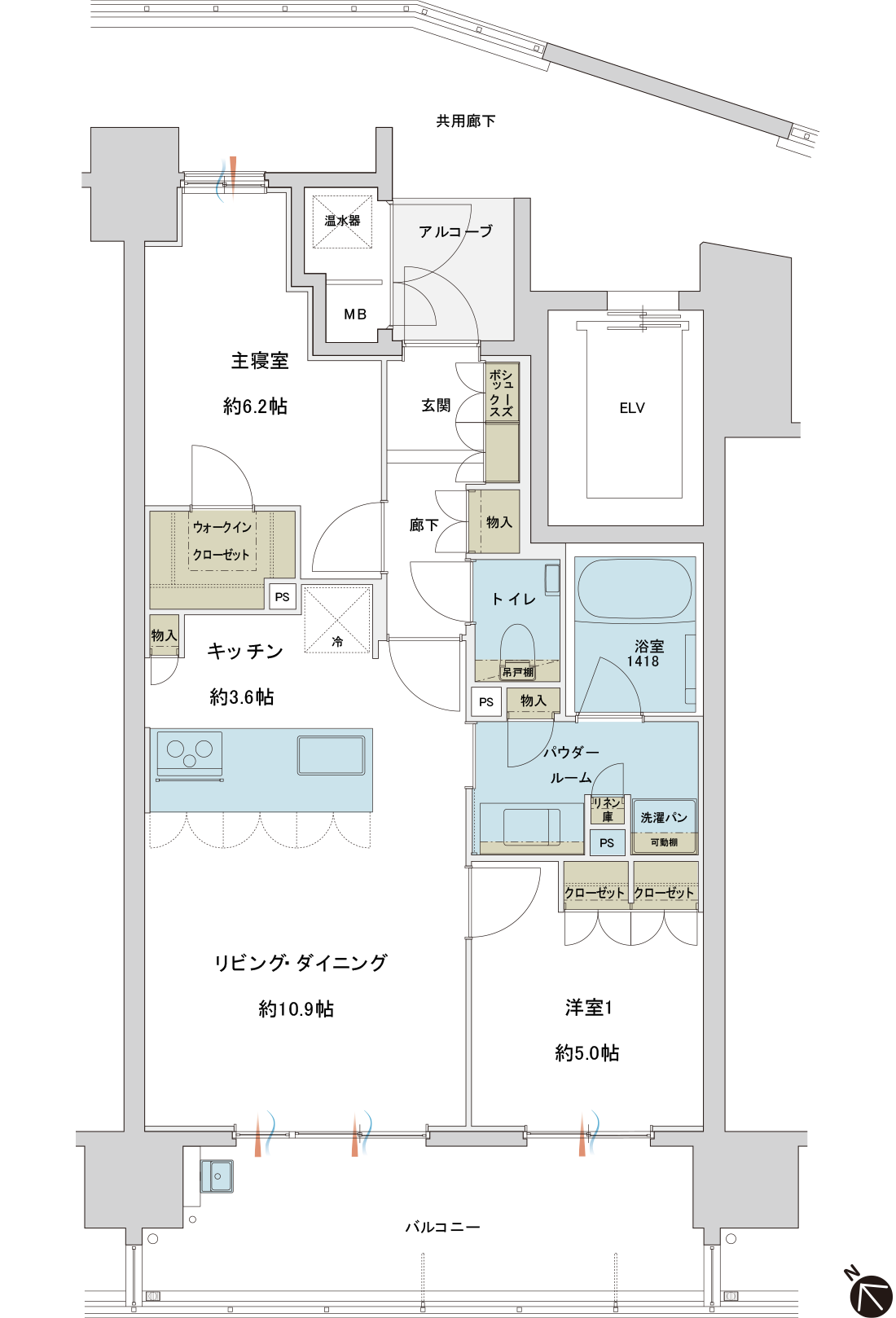 専有面積(温水器1.15m²含む)/62.06m²(18.77坪)